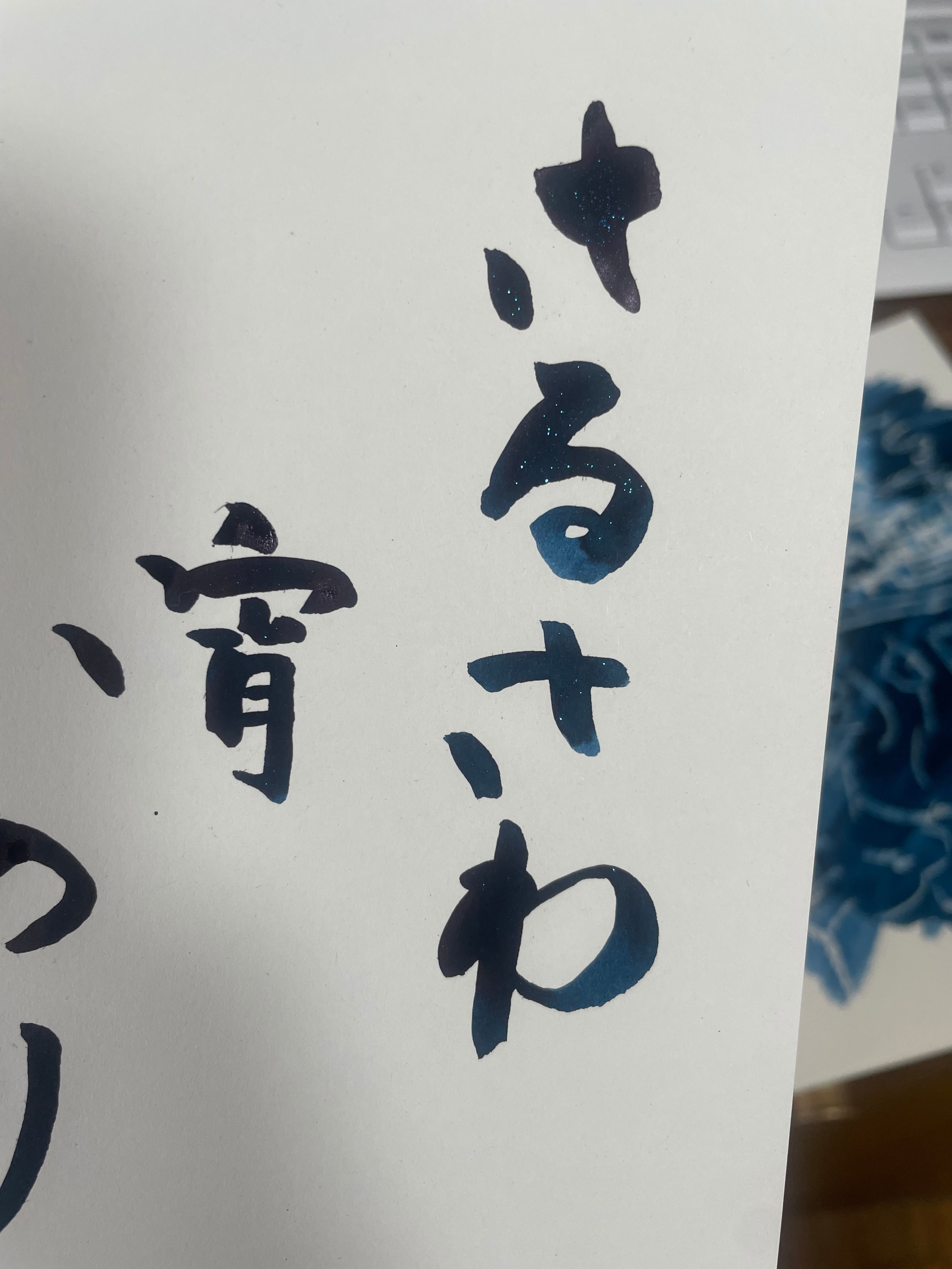 その情景をブルーブラックに偏光ラメを散りばめて表現しました。