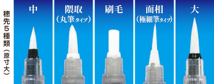 ・5種類の穂先 (中、隈取、刷毛、面相、大 )があります。