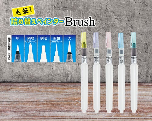 ・水性塗料、プライマー、絵具、書道液、除菌用アルコール等の塗布が可能です。